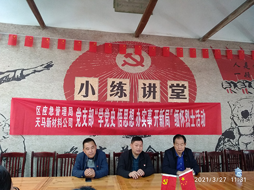 3月27日上午,區(qū)應急管理局黨支部、黃山天馬新材料科技有限公司黨支部聯(lián)合開展了“學黨史 悟思想 辦實事 開新局”緬懷革命烈士清明節(jié)掃墓主題黨日活動。 二個黨支部全體黨員在書記吳局和馬總的帶